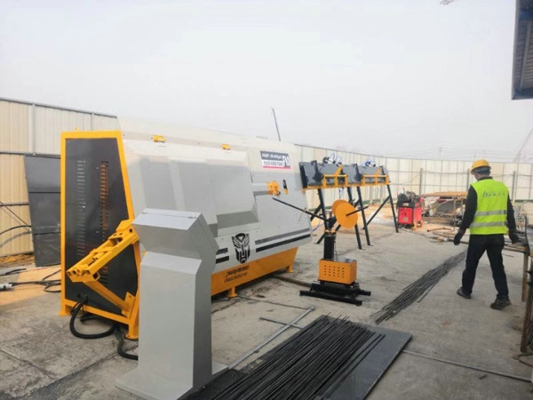 ★實現全自動不間斷的彎曲成形加工流程。調直+定尺+彎箍+切斷一體,產能約 1800 個箍筋/小時,可代替 20~25 名工人的生產效率。進口伺服電機和數字控制裝置可以保證鋼筋成形精度;